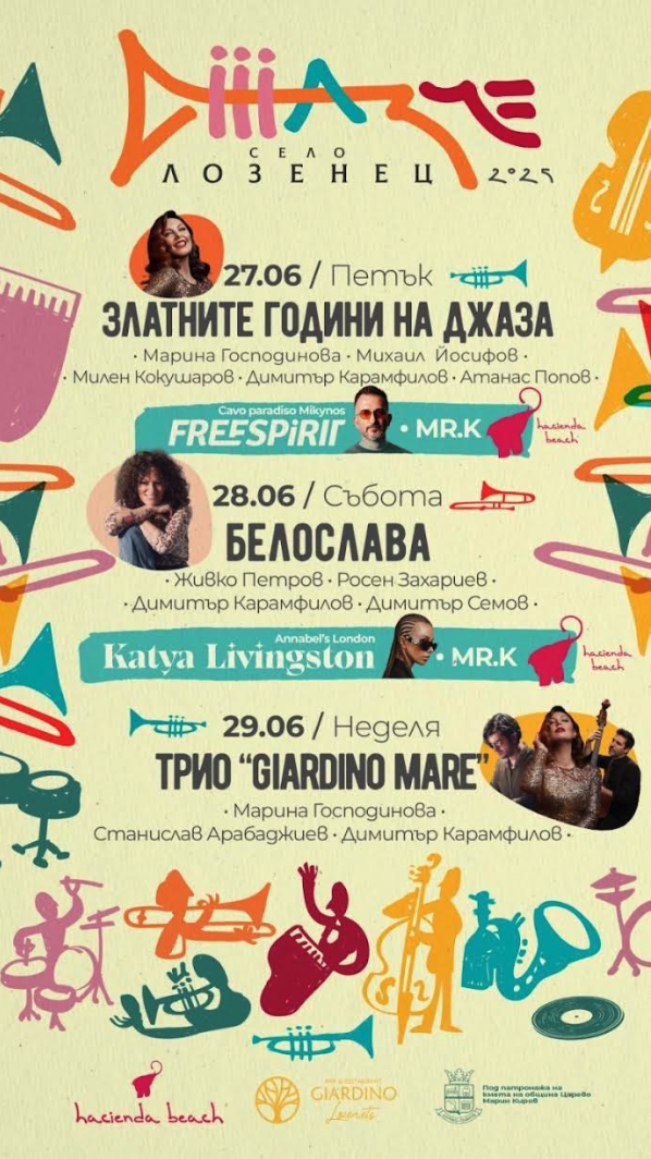 От 27-и до 29-и юни Лозенец ще се превърне в сцена, която ще върне посетителите в златните години на джаза по време на третото издание на Джазче. Музикалното пътешествие в рамките на фестивала ще осъществят Белослава, Живко Петров, Михаил Йосифов, Милен Кукушаров и други.