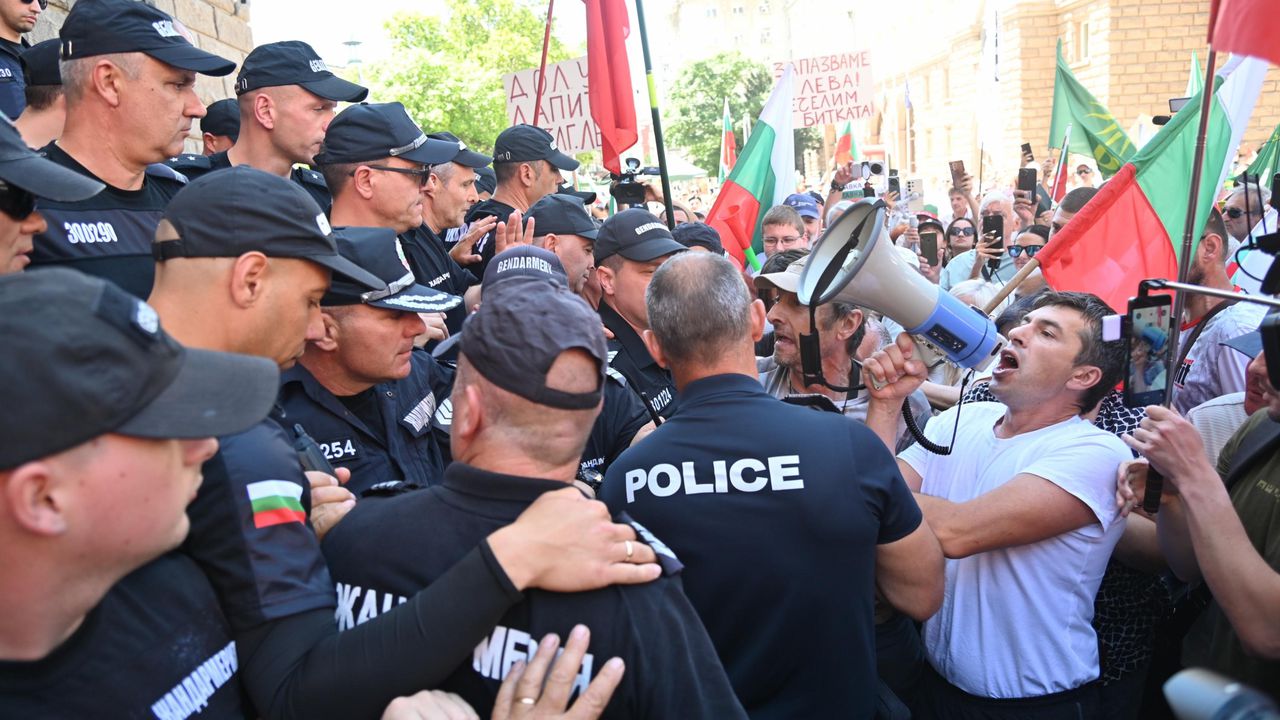 Възникна напрежение пред стълбите на Народното събрание, където полицаите се струпаха, за да пазят входа на парламента.