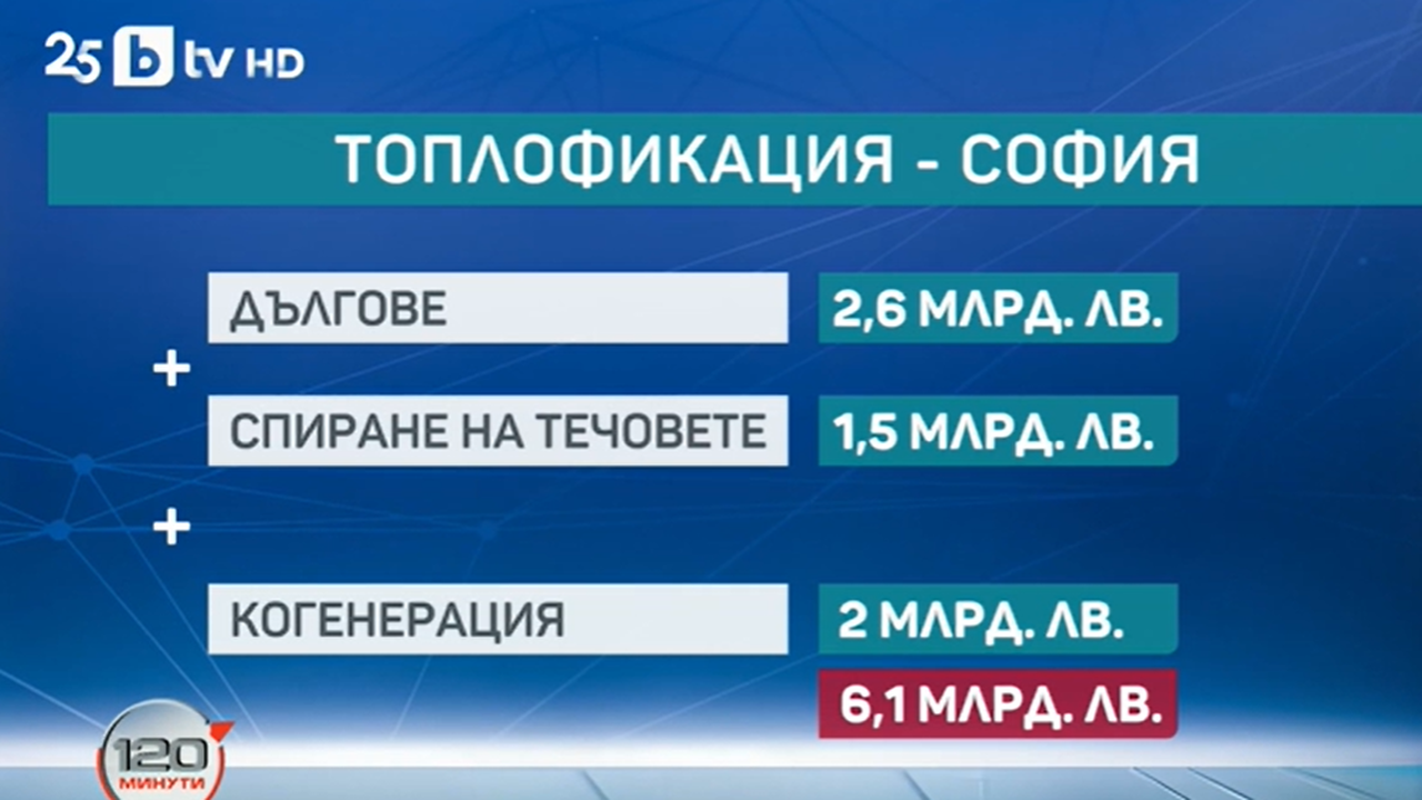 Реално са необходими около 1,5 млрд. лева, за да се смени изцяло остарялата инфраструктура, подземната говоря, не надземната, която са турбини, когенерационни мощности и т.н.