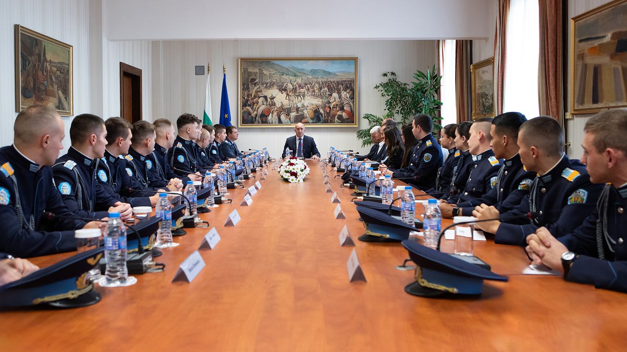 Преди церемонията държавният глава проведе среща в президентската институция с курсанти от Висшето военновъздушно училище „Георги Бенковски“. „Вие сте бъдещето на ВВС, но за да имаме това бъдеще трябва да стъпим на здрави ценностни основи, произтичащи от нашите идеали, история, дух и отговорност към Родината“, посочи Румен Радев по време на срещата, на която бе запознат с актуалната учебна програма на училището. По негови думи възможностите пред младите курсанти днес са големи, защото имат възможността и привилегията да „управляват на върха на съвременните технологии“ и то във време, когато младите пилоти имат шанс за допълнително обучение и повишаване на квалификацията чрез специализации в академии на партньорски страни. Държавният глава припомни и предизвикателствата, с които трябва да се справят бъдещите офицери в защита на българското небе, произтичащи от поддържането на летателната техника и провеждането на пълноценна подготовка. „Най-важното е българските летци да имат възможността за повече летателни часове, да придобиват повече знания и опит, посочи президентът Румен Радев. Във връзка с това държавният глава открои необходимостта водещи при договорите за модернизация на въоръжените сили да не бъдат политически съображения, а те да отчитат и следват военнотехническата експертиза. Президентът подчерта също така значението на придобиването и усвояването на безпилотни летателни системи за развитието на съвременни отбранителни способности.